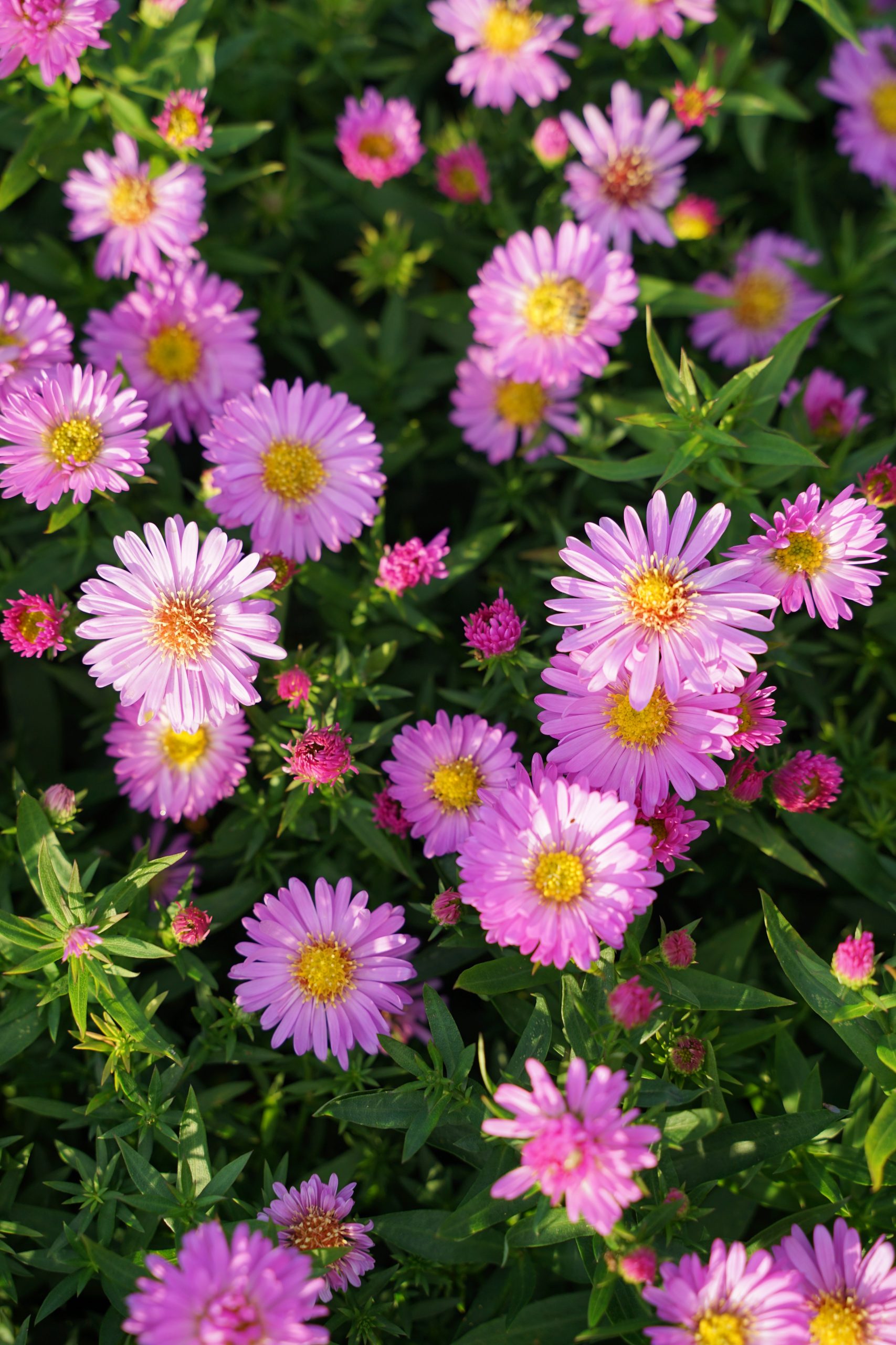 rosa-violett, IX-X, 35 cm, Blatt grün, sonnig, mittel, ausläufertreibend, Pflanzabstand 35 cm