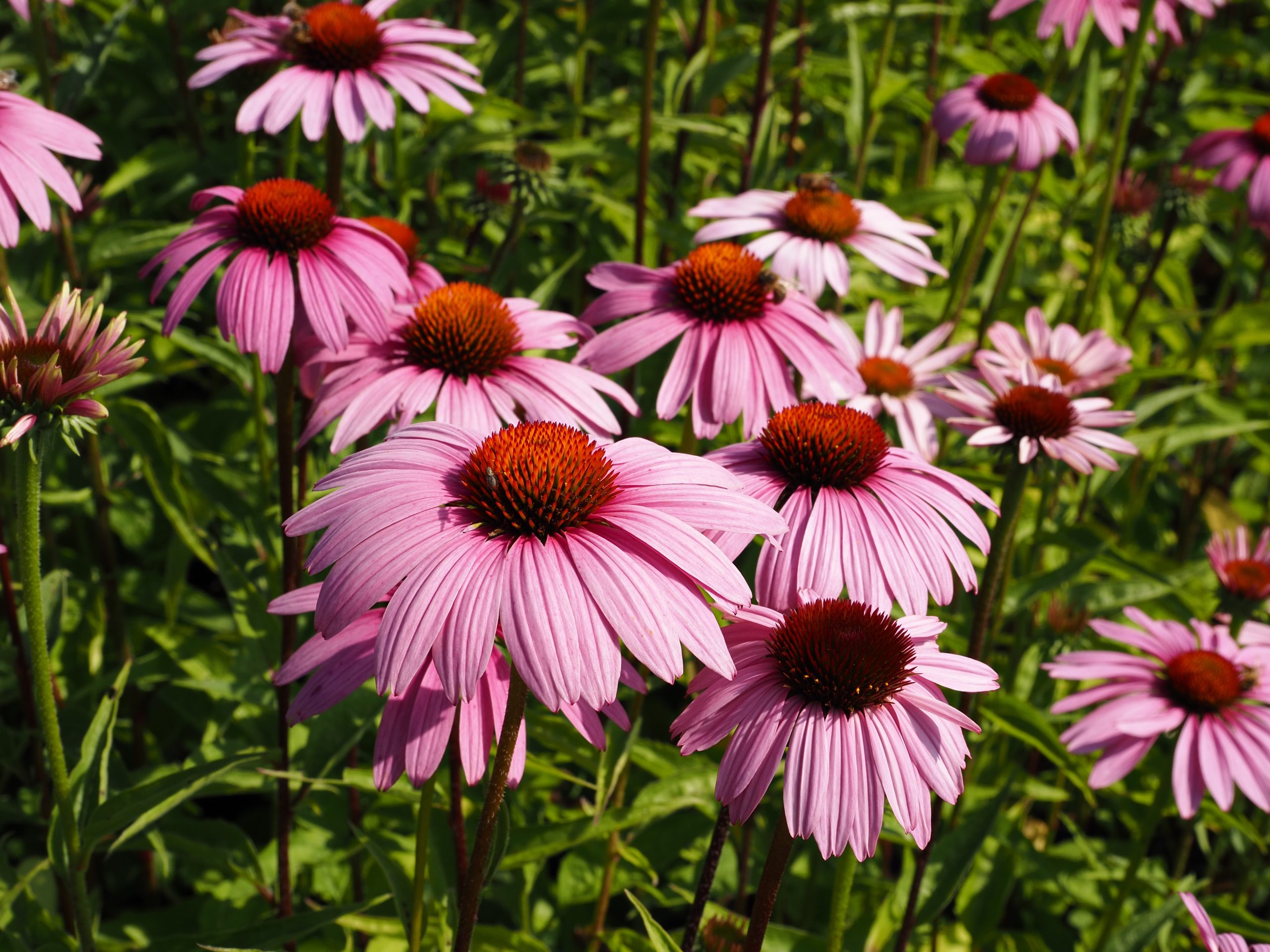 Bauerngarten, Bienen- und Schmetterlingsstauden, Dauerblüher, Präriestauden, Remontierende Stauden, Rosenkavaliere, Schnittstaude, Straßenbegleitgrün, essbare Blüten