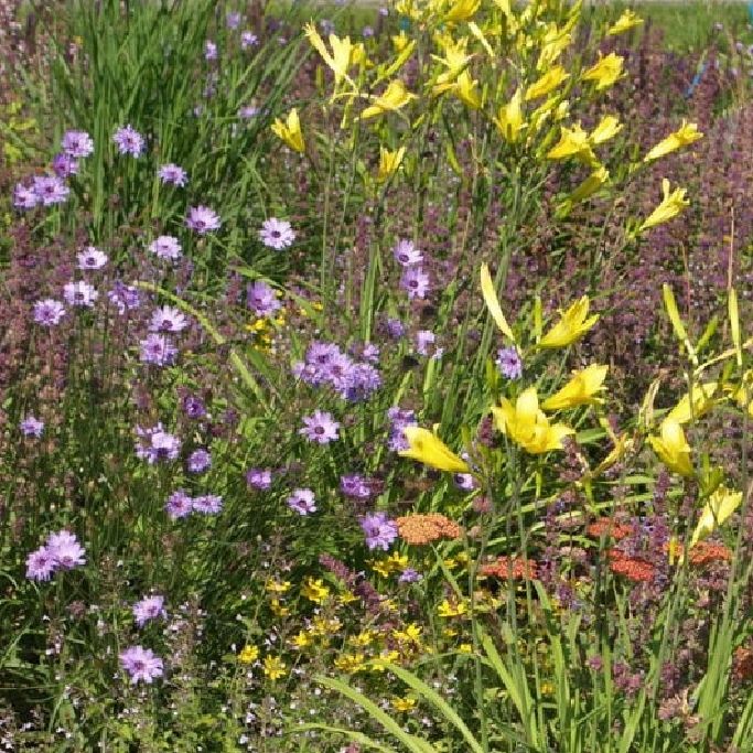 Mindestbestellmenge: 10 m² - Staudenmischung mit wechselnden Farben, es dominieren Gelb und