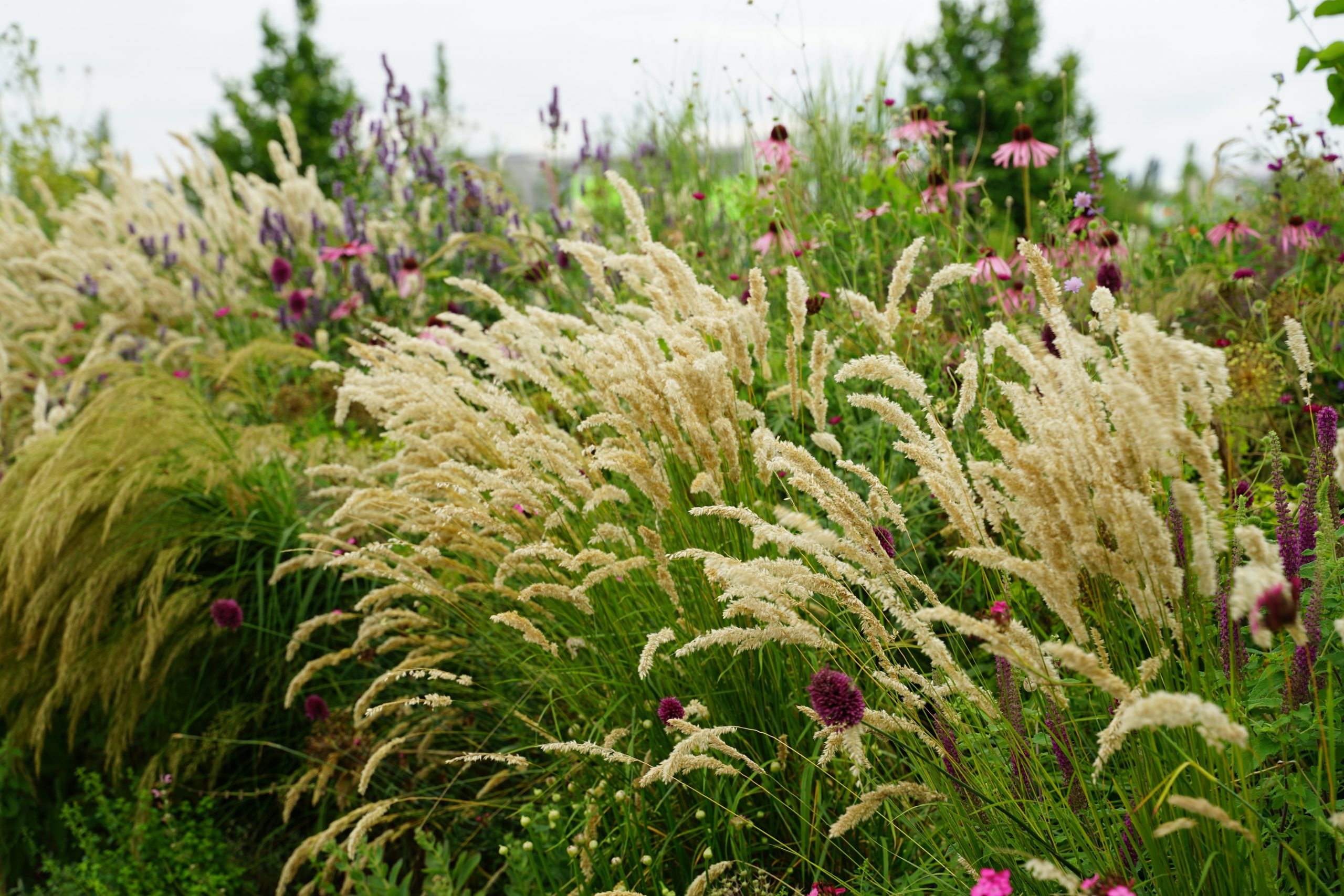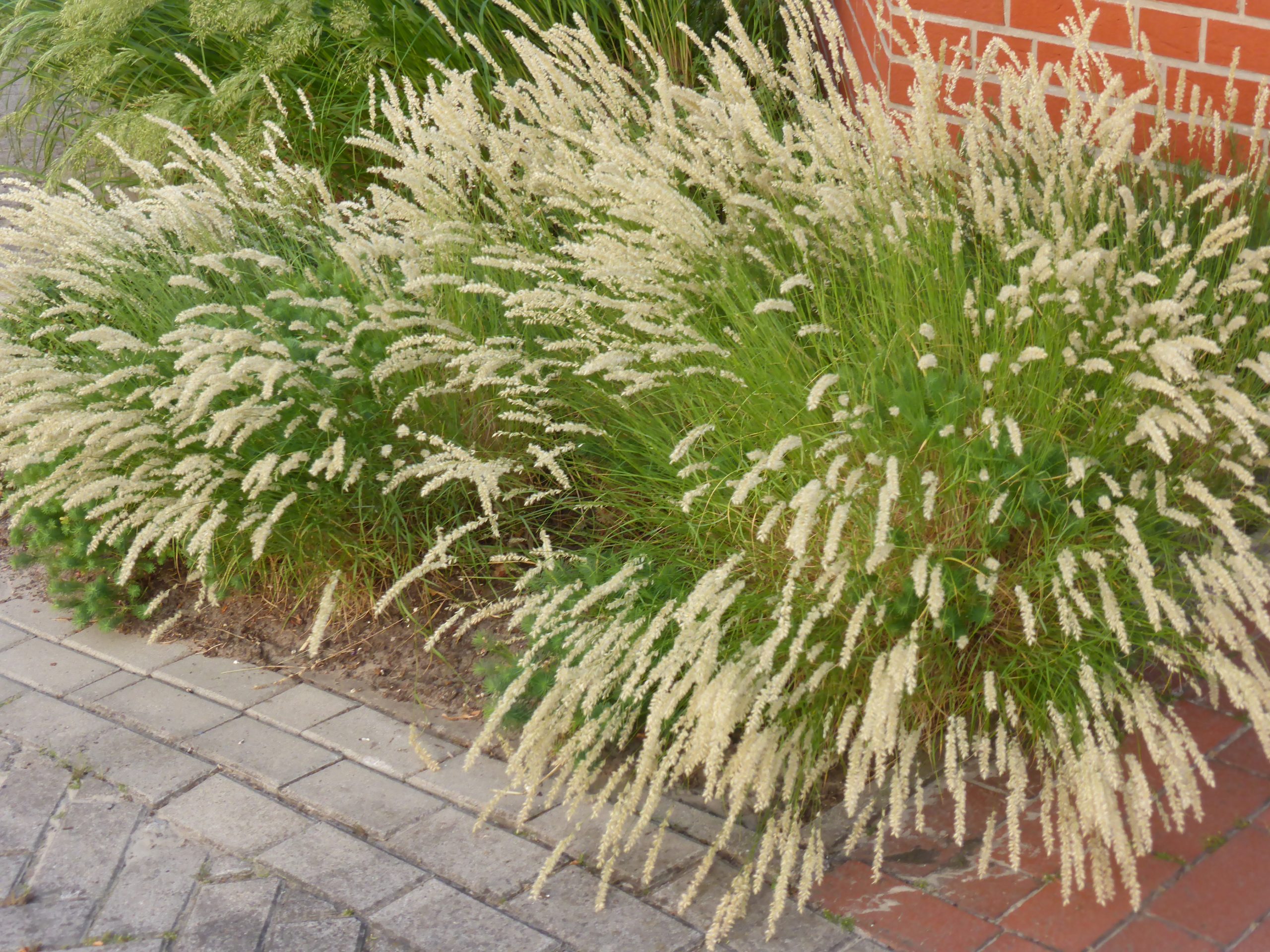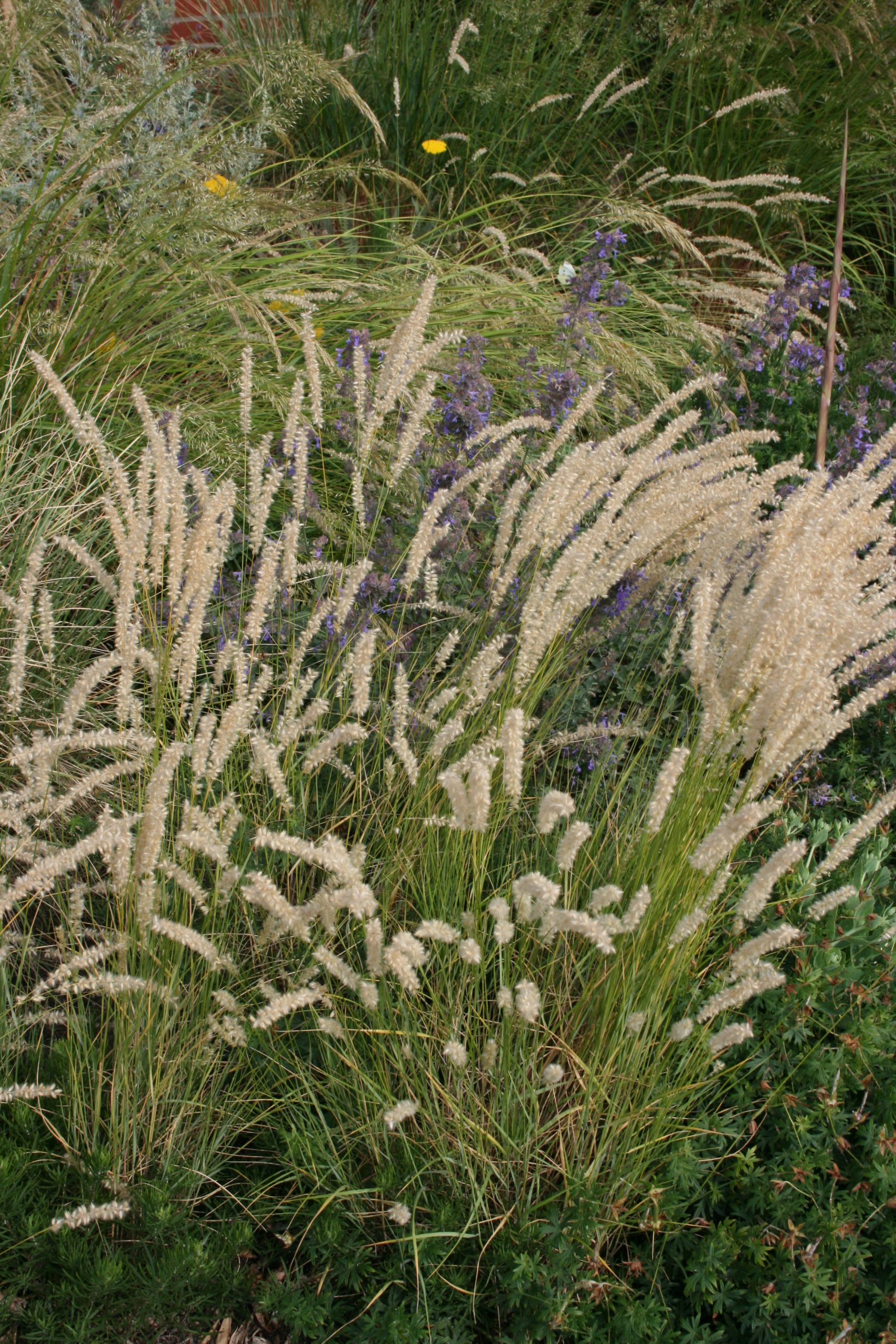 gelblich-weiß, VI-VIII, 50 cm, Blatt grün, sonnig, trocken, versamend; horstig, Pflanzabstand 35 cm
