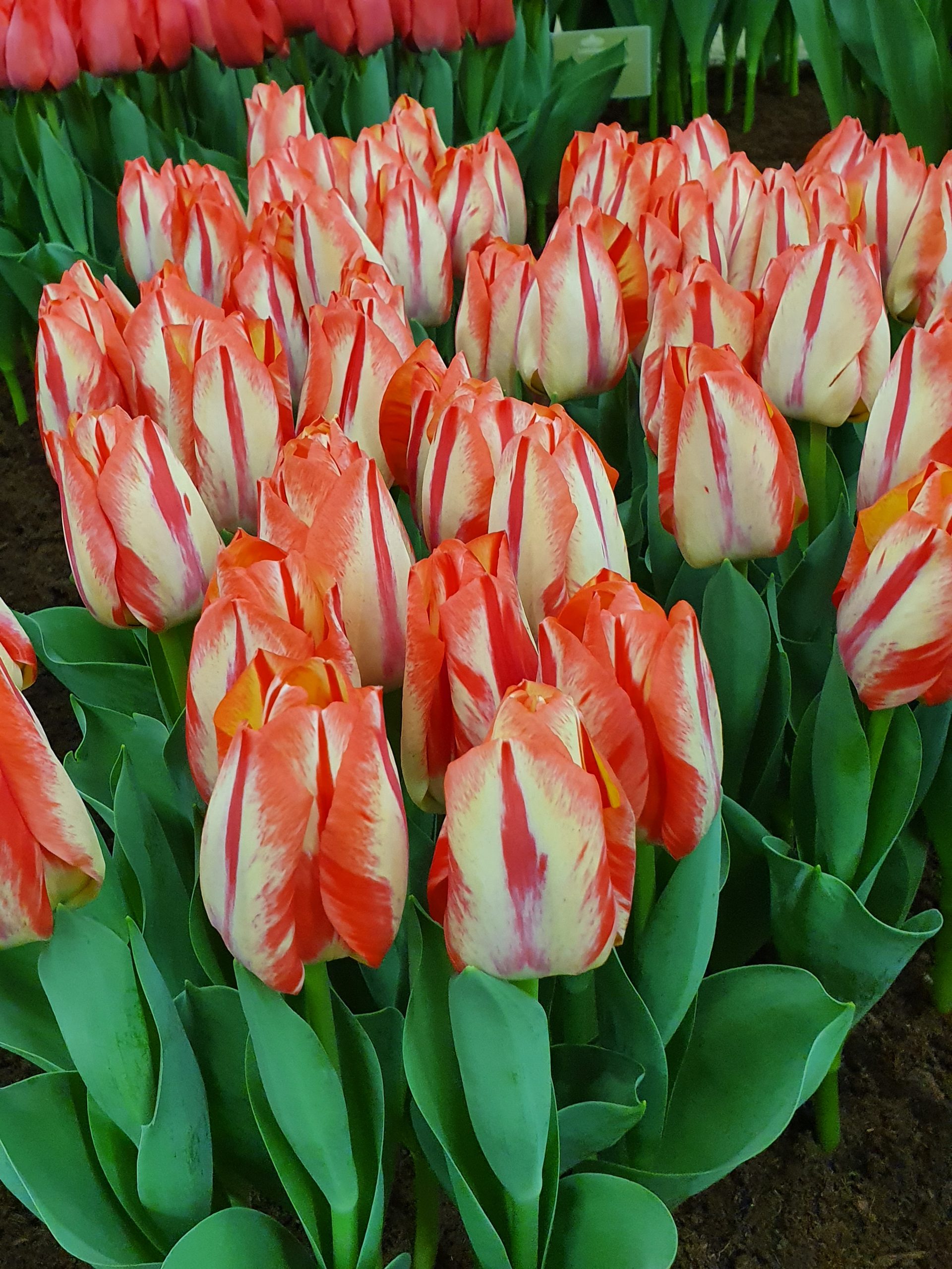 weiß, rot geflammt, IV-IV, 35 cm, Blatt grün, sonnig, mittel, horstig, Pflanzabstand 15 cm