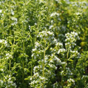 Schlangenbart, weiß, VI-VII, 25 cm, Blatt grün, halbschattig, trocken bis mittel, ausläufertreibend, Pflanzabstand 35 cmP 0,5|ab € __,__IIIIIIIVVVIVIIVIIIIXXXIXIIOriganum laevigatum 'Aromatico'